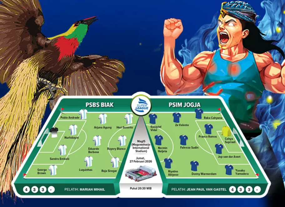 mainbola.co — Duel pekan ke-23 BRI Super League 2025/2026 akan mempertemukan PSIM Jogja melawan PSBS Biak pada Jumat (27/2/2026) pukul 20.30 WIB. Pertandingan digelar di Stadion Maguwoharjo International Stadium yang musim ini menjadi markas PSBS, menghadirkan nuansa unik bagi tim tamu yang tetap merasakan atmosfer seperti bermain di kandang sendiri.